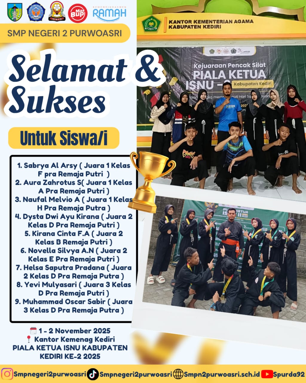 “Tendangan Prestasi! Siswa SMPN 2 Purwoasri Bawa Pulang Medali di Kejuaraan Pencak Silat”