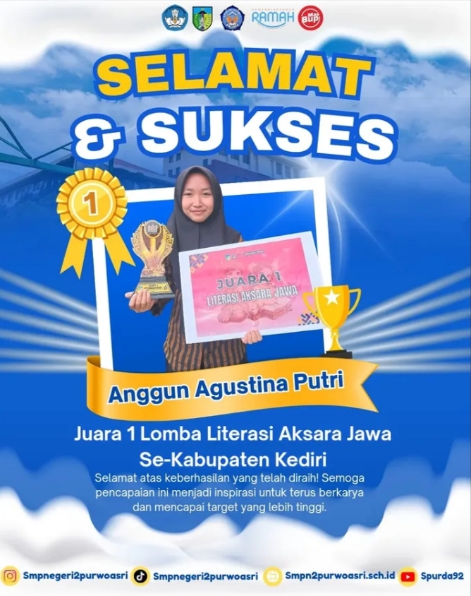 Siswi SMPN 2 Purwoasri Raih Prestasi Tertinggi dalam Pelestarian Aksara Jawa se-Kabupaten.